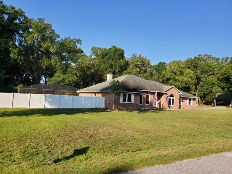 Sprawling, all brick, pool home perfect for entertaining. Gourmet kitchen includes a chef's gas range, sleek modern maple cabinetry and quartz countertops. Adjacent formal dinning room and a breakfast room. Split floor plan. Vaulted ceilings. Beautiful fireplace to warm those winter evenings. 4 bedrooms and 2 1/2 baths - perfect for a large family. NEW ROOF 2025. Lounge and entertain in the spacious wrap around screen porch. Large corner lot. Located in esteemed Plantations - a place you will want to call home!